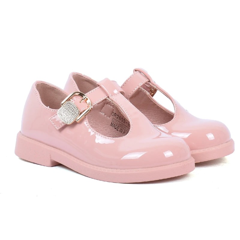Chaussure fille rose vernie à boucle dorée OSCAR KIDS OK-DR2603-B-RO