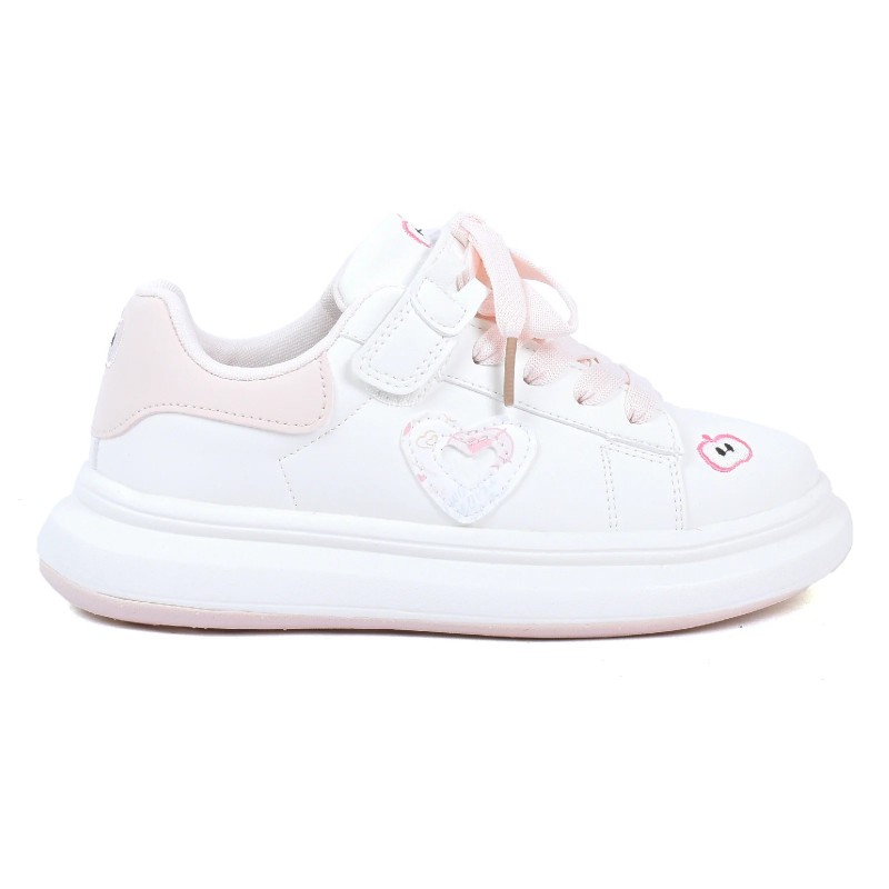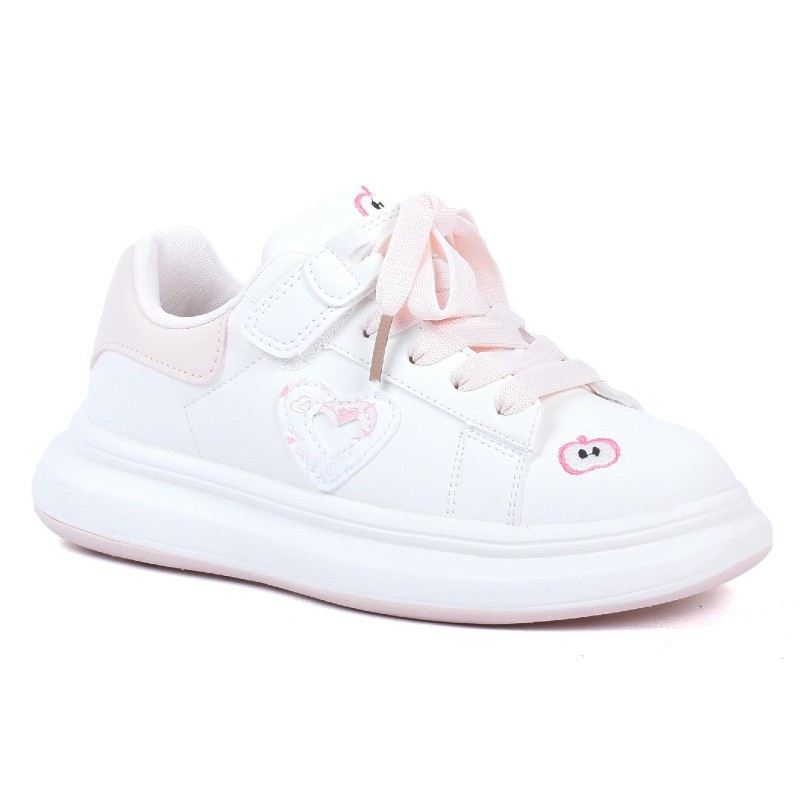 Basket fille blanche et rose à scratch motif cœur ROBINSON A109-BC