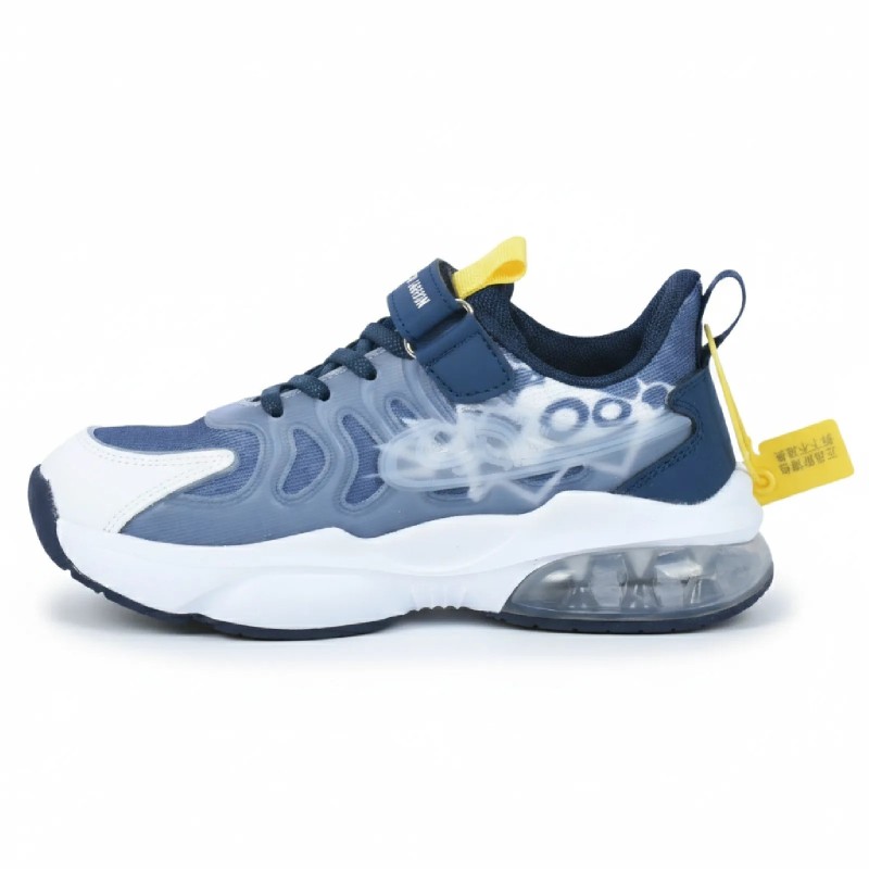 Ces baskets garçon au style sport urbain offrent un design moderne et dynamique. Leur semelle épaisse avec bulle d’air visible assure un excellent amorti, idéal pour accompagner les journées actives. La bride auto-agrippante combinée aux lacets garantit un maintien sécurisé et un enfilage facile.