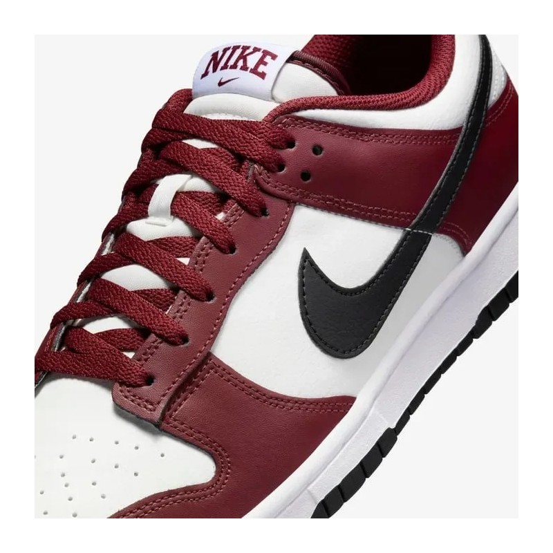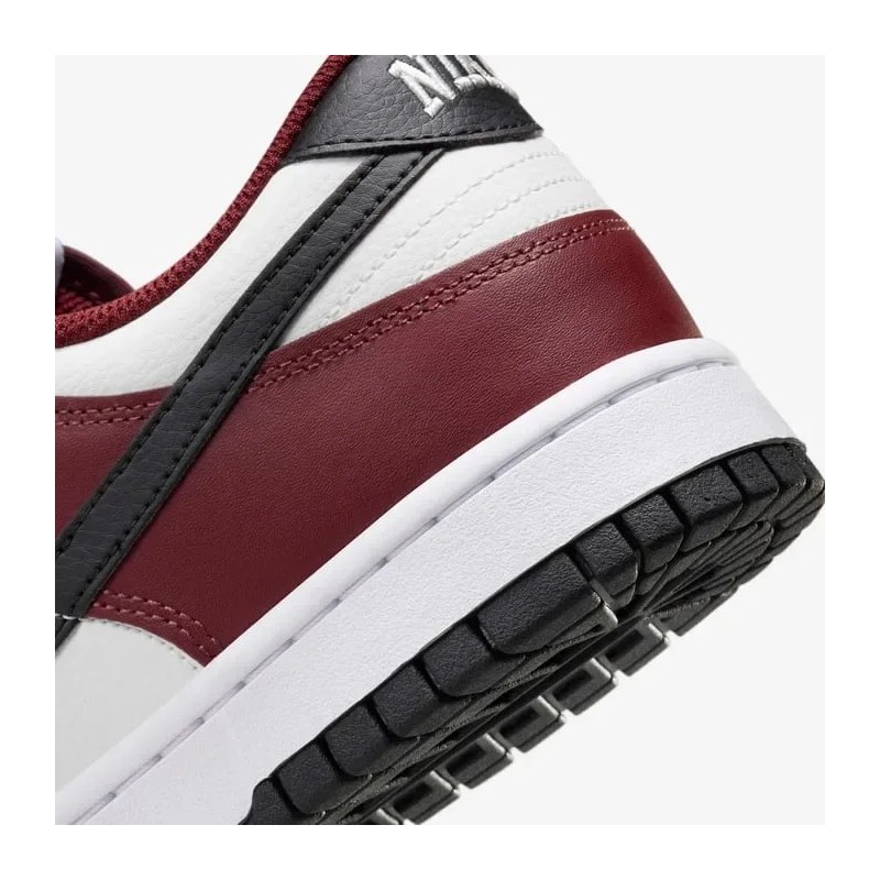 Sa tige en cuir lisse associe durabilité et élégance, tandis que son col bas rembourré offre un maintien confortable, que ce soit sur le terrain ou dans la rue. Fidèle à l’esprit vintage du modèle original, cette version affiche un contraste dynamique de rouge foncé et de blanc, sublimé par des détails noirs subtils pour un look affirmé.