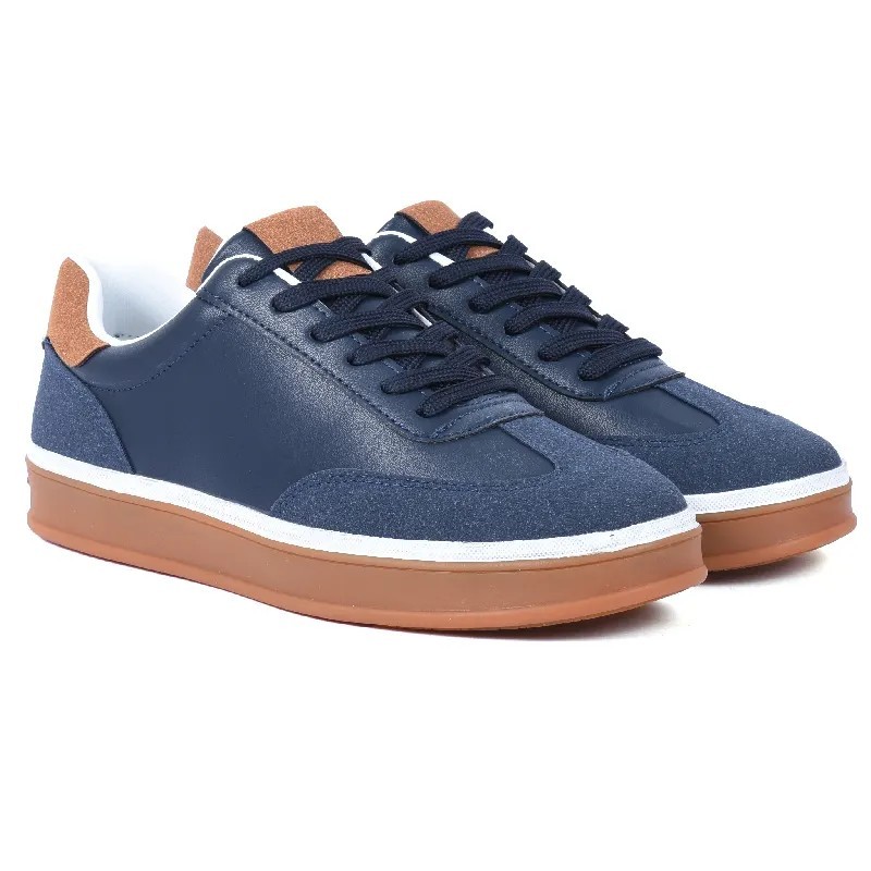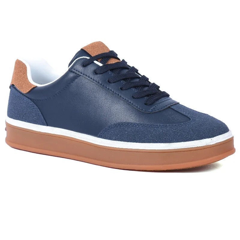 Sneakers homme GLA SHOES bleu marine et camel – Réf GLA-FA-1-BLM
