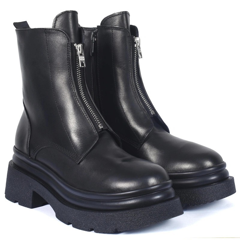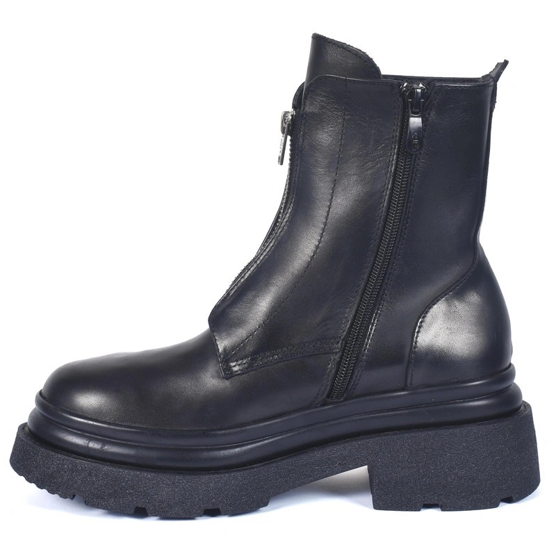 Bottine noire élégante en cuir, à semelle crantée confortable.