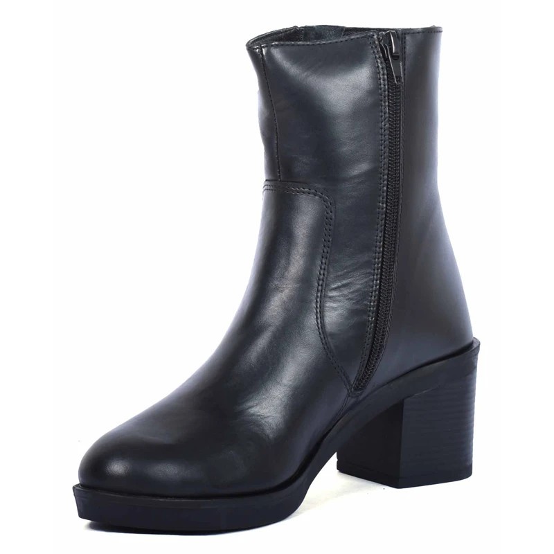 Apportez du style et de l’élégance à votre garde-robe avec ces bottines à talon pour femme en 100% cuir véritable. Elles présentent une tige de 15 cm pour un maintien optimal, et un talon de 6,5 cm , assurant à la fois hauteur et confort. La fermeture zippée sur le côté ajoute une touche pratique et moderne, tandis que la semelle en caoutchouc garantit une adhérence parfaite pour chaque pas. Idéales pour sublimer vos tenues, ces bottines sont le choix parfait pour un look chic et raffiné.