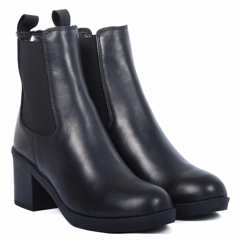 BOOTS FEMME CUIR NOIR À TALON