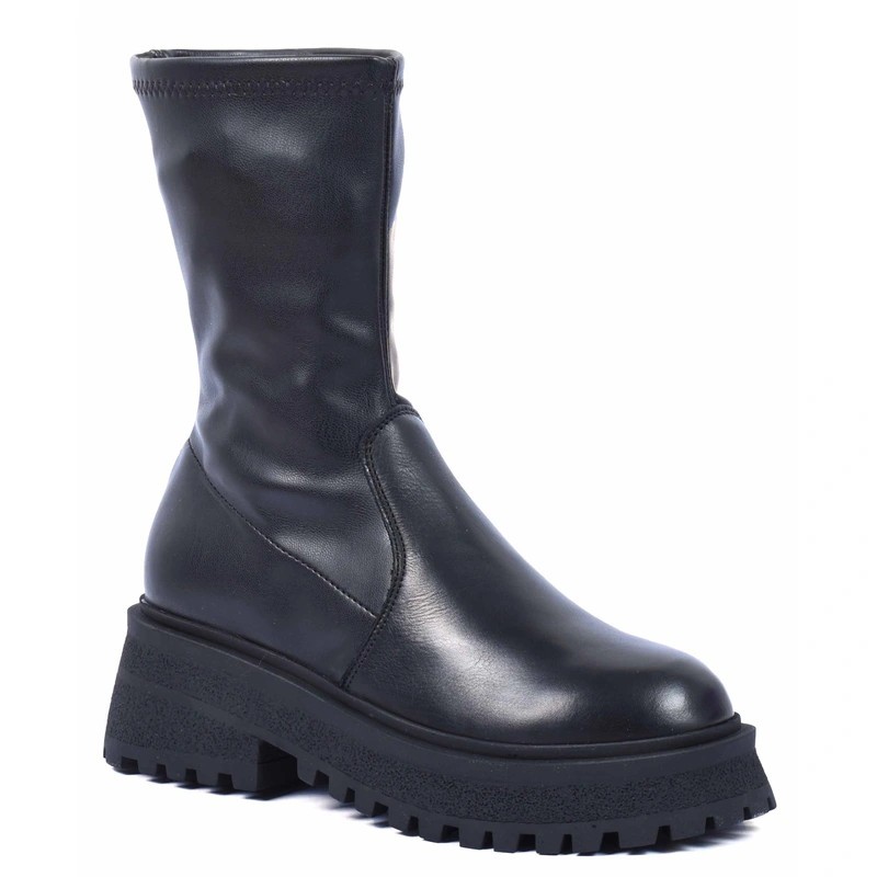 BOOTS FEMME EN CUIR À SEMELLE ÉPAISSE