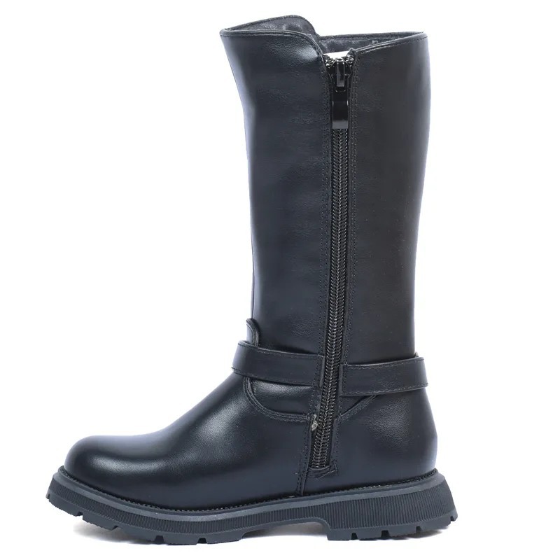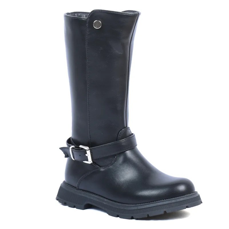 Bottes fille noires avec tige haute et boucle décorative, confortables et élégantes pour l’hiver.
