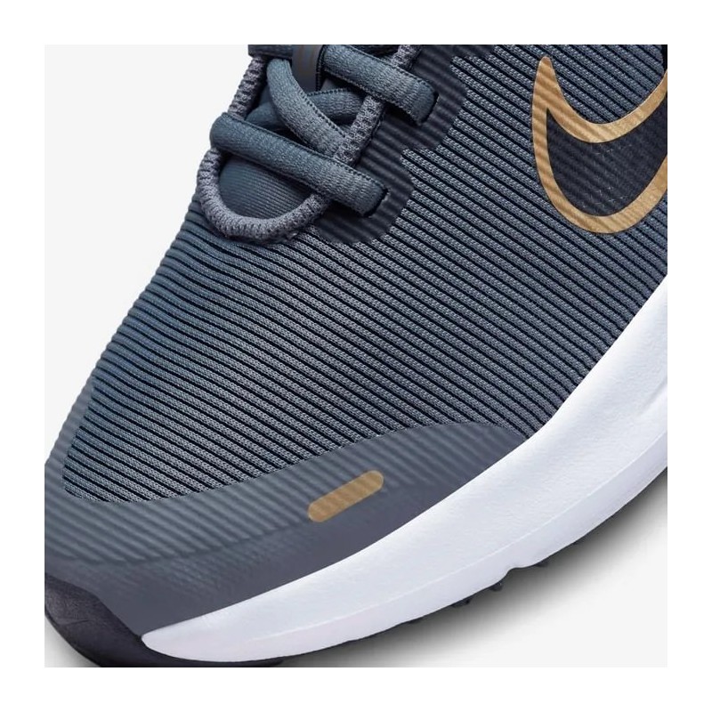 La semelle comporte plus de caoutchouc que les versions précédentes de la Downshifter, pour offrir une résistance maximale. Elle est composée d'environ 9 % de Nike Grind, une matière conçue à partir de chutes de fabrication recyclées.