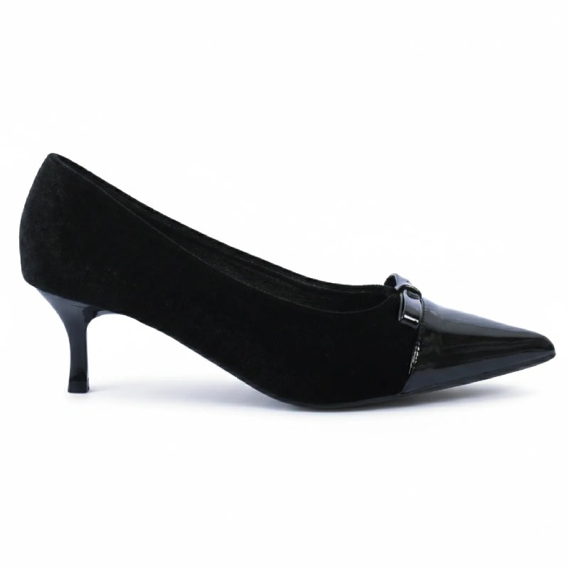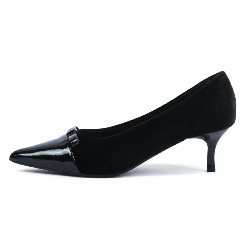 Ces escarpins femme associent une tige en velours texturé à un bout en finition vernie brillante pour un rendu chic et intemporel. Parfaits pour compléter une tenue habillée ou professionnelle.