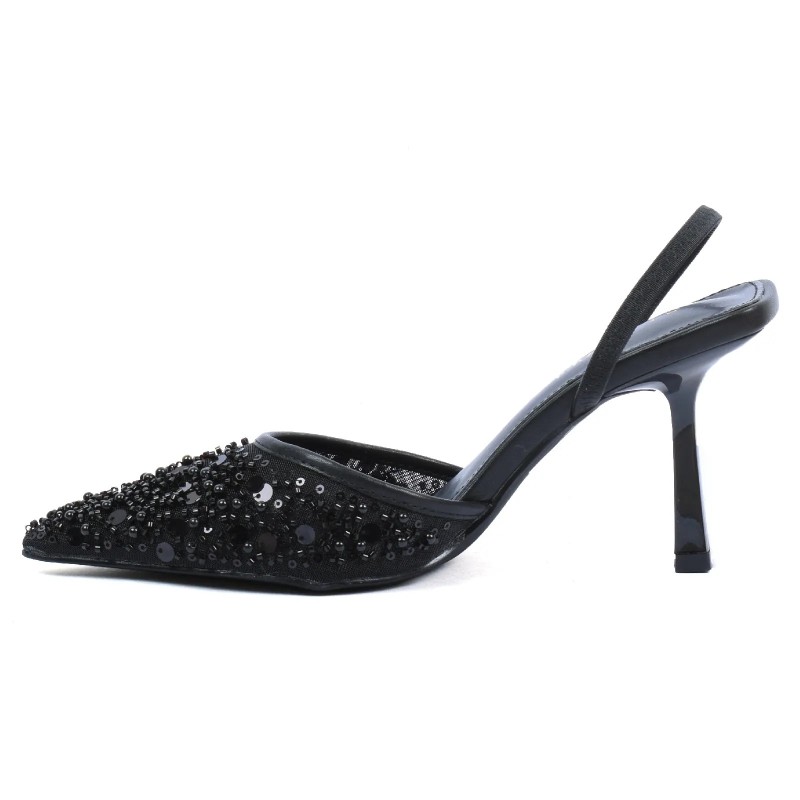 Ces escarpins slingback pour femme apportent une touche glamour et sophistiquée. Leur bout pointu et leur talon élancé offrent une silhouette élégante parfaite pour les soirées et occasions spéciales.