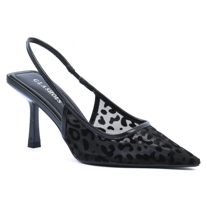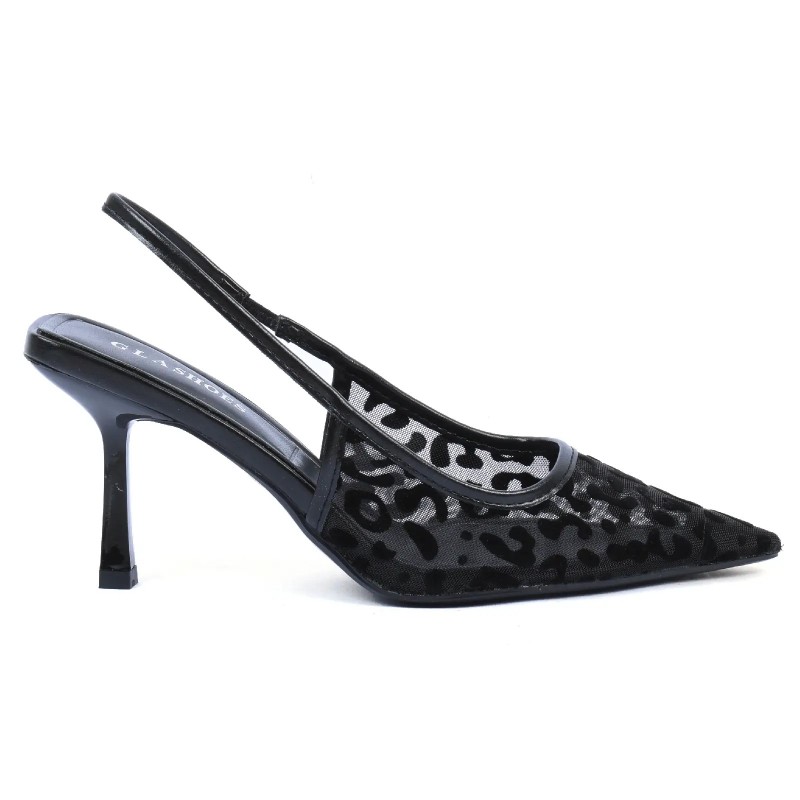 Ces escarpins slingback pour femme séduisent par leur design moderne avec tulle transparent décoratif. Leur silhouette à bout pointu et talon élégant apporte féminité et sophistication.