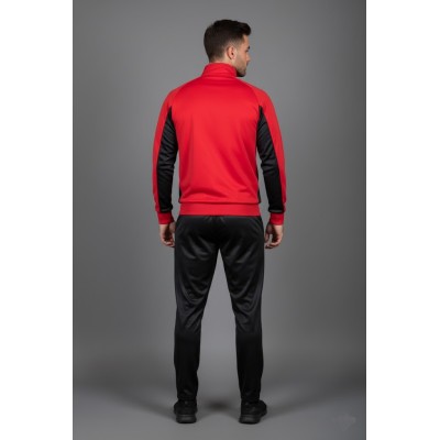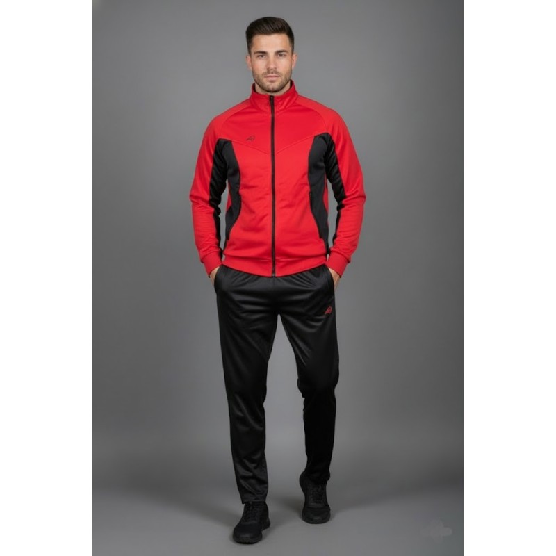 Survêtement homme rouge en satin, alliant confort, performance et style moderne.
