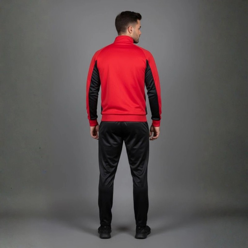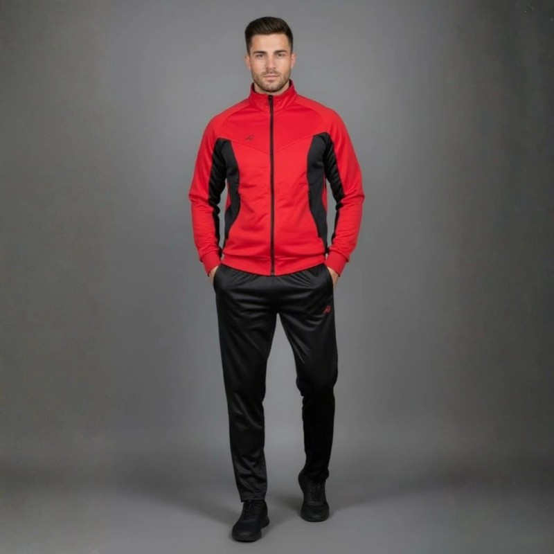 Survêtement homme rouge en satin, alliant confort, performance et style moderne.