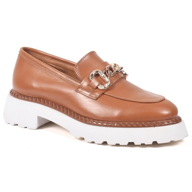 Mocassin marron en cuir souple, semelle épaisse et chic.