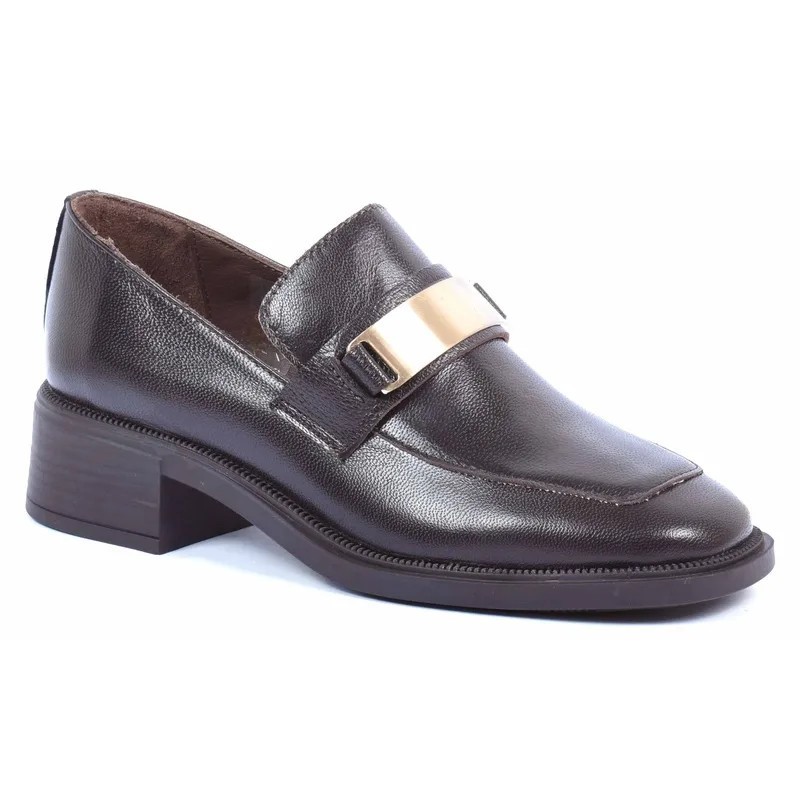 MOCASSINS FEMME CUIR MARRON À BANDE MÉTALLIQUE