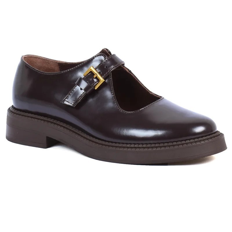 Inspirée des modèles rétro, la Mary Jane Andrea Bruni en cuir marron séduit par son élégance intemporelle. Sa bride avec boucle dorée ajoute une note chic et féminine, idéale pour accompagner vos tenues habillées ou professionnelles.