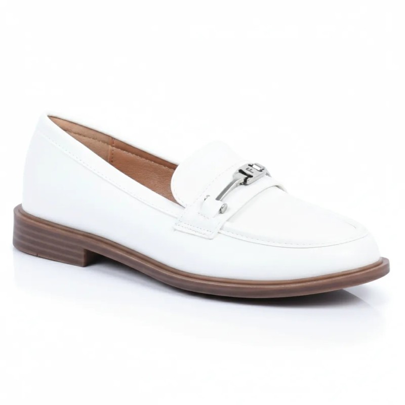 MOCASSINS FEMME BOUCLE METALLIQUE BLANC