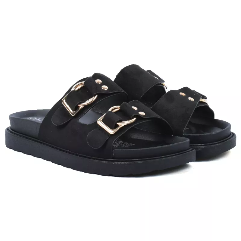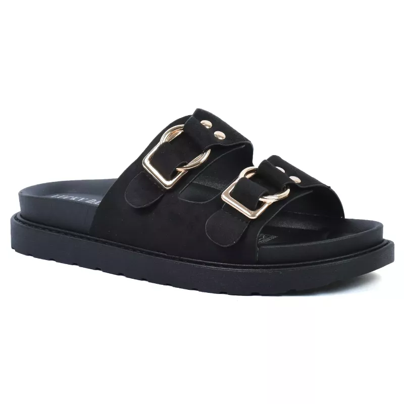 Optez pour un style à la fois tendance et confortable avec cette mule pour femme. Son design moderne à double bride avec boucles métalliques apporte une touche élégante tout en assurant un bon maintien du pied. Facile à enfiler, elle est idéale pour un usage quotidien.