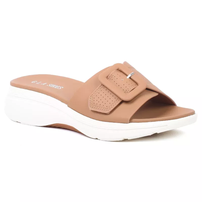 Optez pour un confort optimal avec cette mule pour femme signée GLA. Son design épuré avec boucle ton sur ton et détails perforés apporte une touche moderne et élégante. Idéale pour un usage quotidien, elle offre légèreté et bien-être grâce à sa semelle ergonomique.