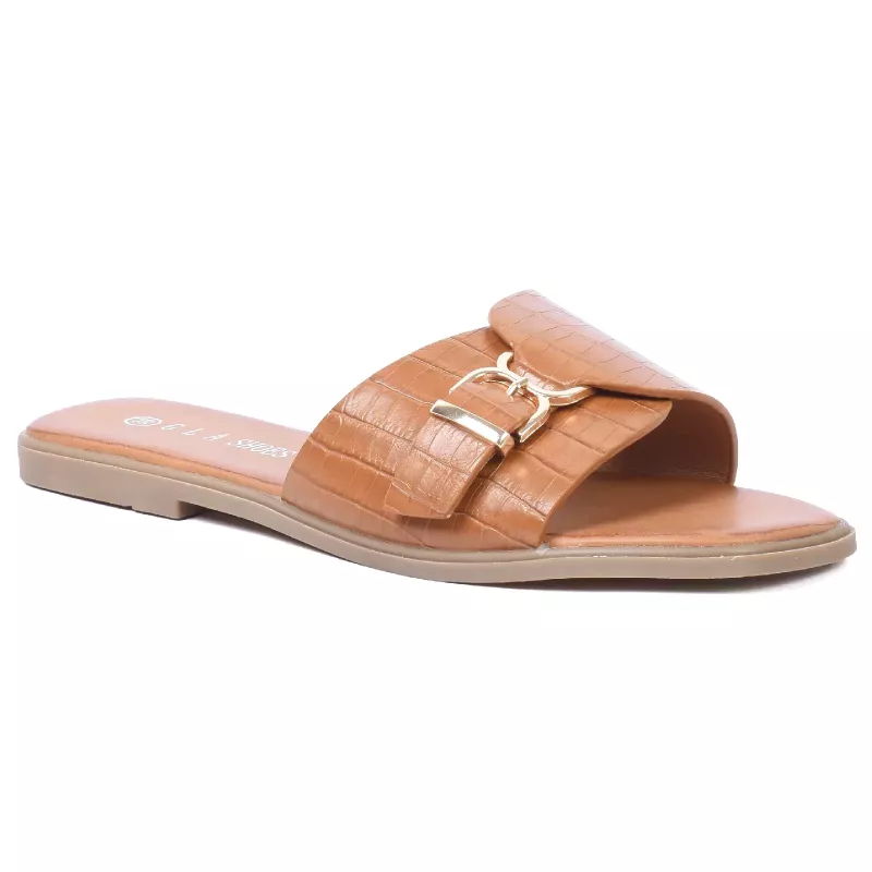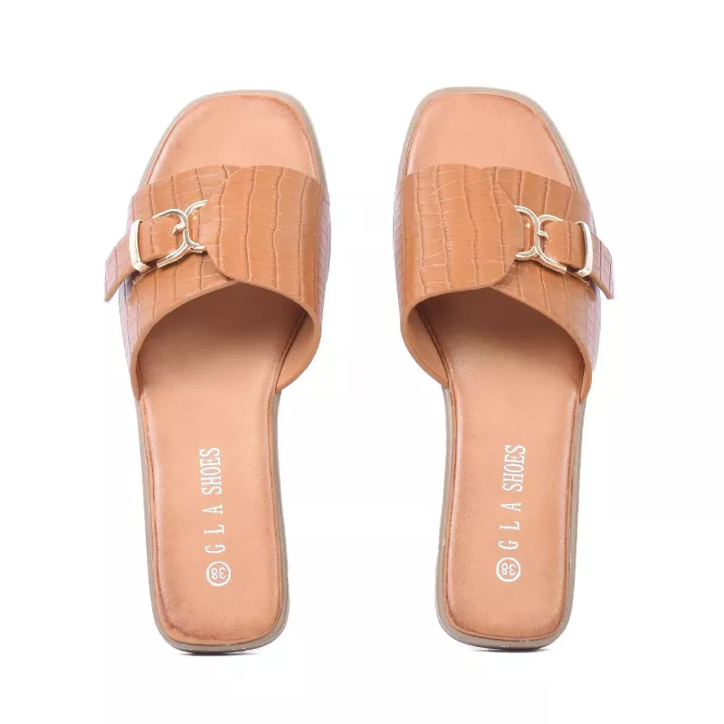mule-plate-femme-croco-boucle-camel-gla-ll-146-c