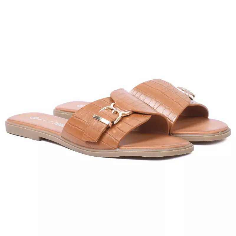 MULE PLATE FEMME CAMEL EFFET CROCO À BOUCLE