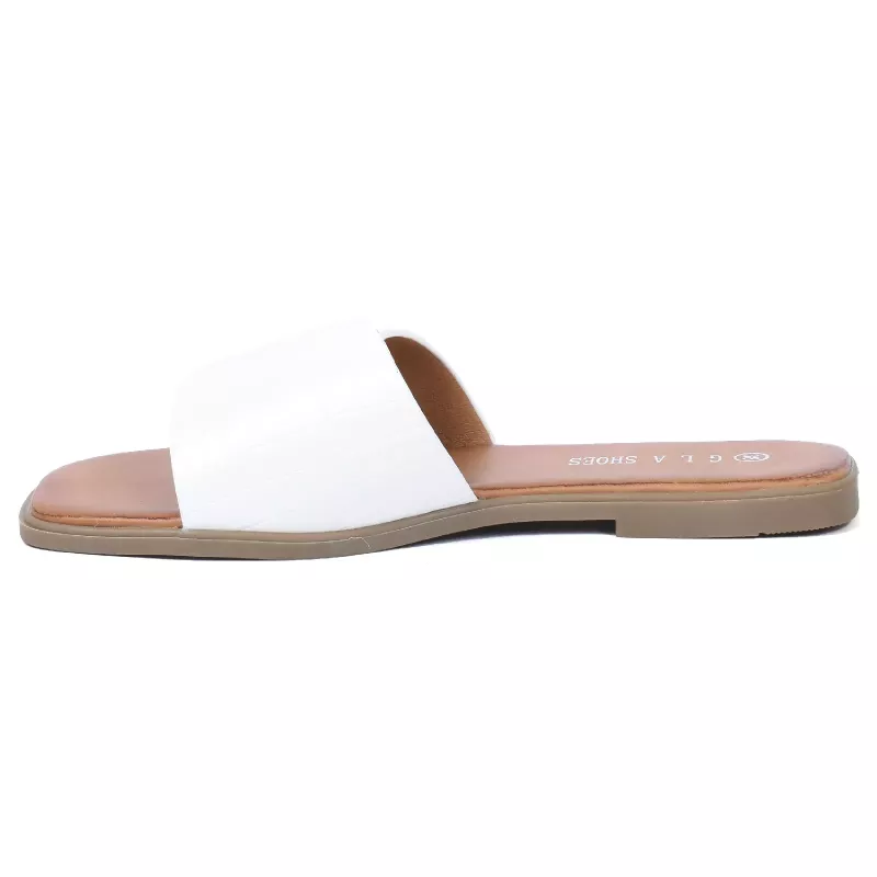 Adoptez un look lumineux et raffiné avec cette mule plate pour femme signée GLA. Son effet croco élégant associé à une boucle métallique apporte une touche moderne et chic. Facile à enfiler, elle assure confort et légèreté pour un usage quotidien.