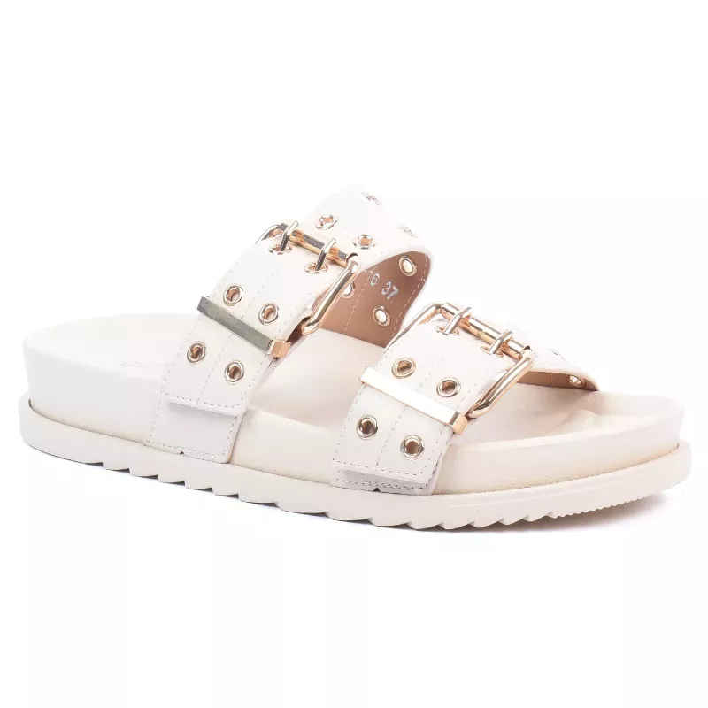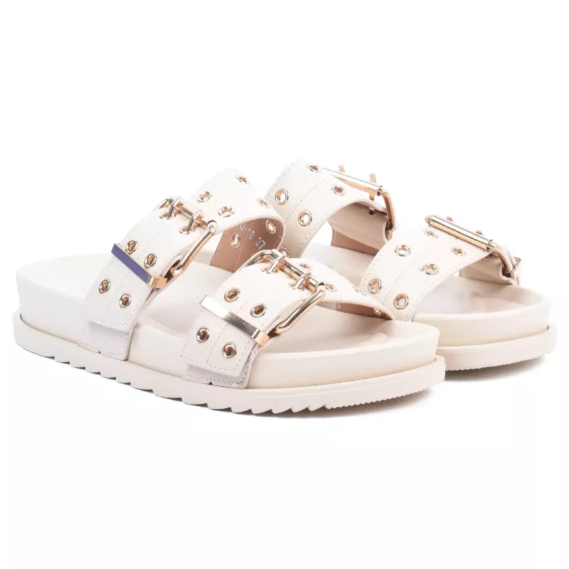Ces mules pour femme de la marque GLA se distinguent par leur design moderne et affirmé. Dotées de doubles brides avec boucles métalliques et détails perforés, elles apportent une touche tendance à vos tenues. Faciles à enfiler, elles offrent un excellent confort grâce à leur semelle épaisse et leur conception pensée pour un usage quotidien.