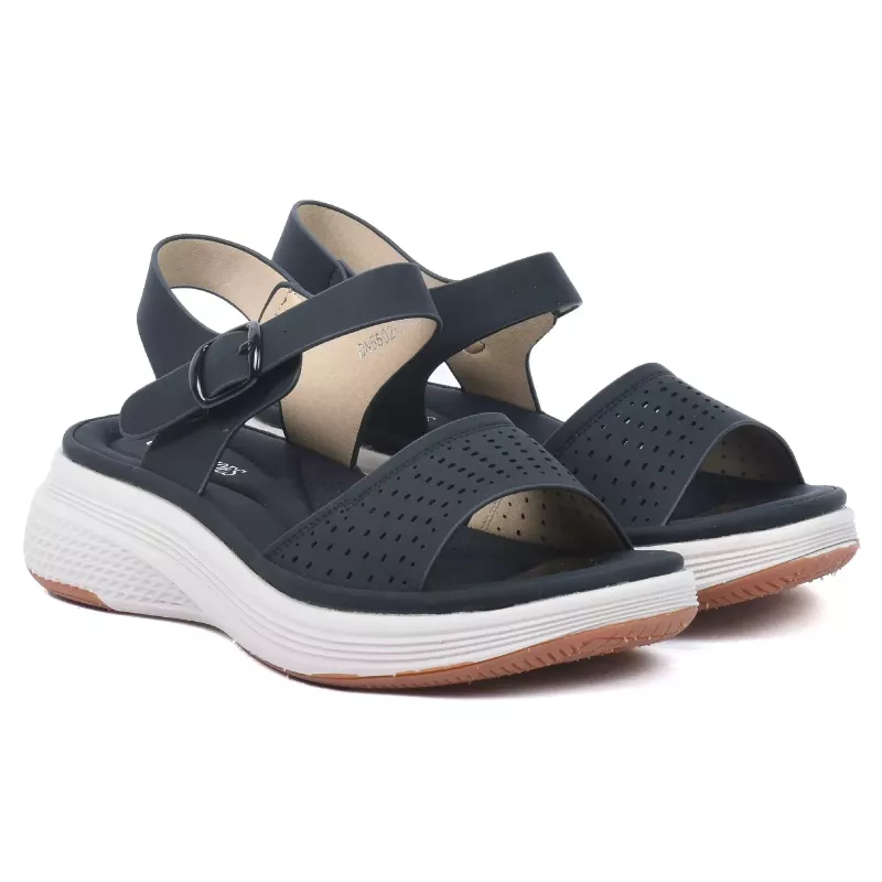 Ces sandales compensées pour femme offrent un excellent amorti et un confort durable. Leur design moderne et aéré apporte une touche élégante et tendance à vos tenues estivales.