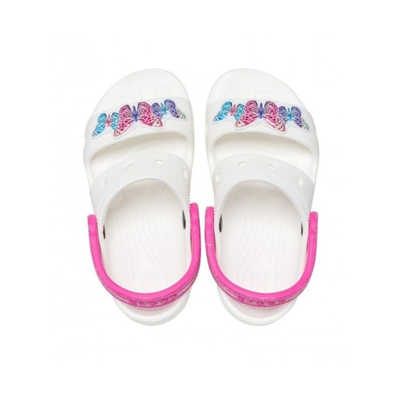 La confortable sandale Classic de Crocs est désormais dotée de couleurs vives et attrayantes et de décorations parfaites pour la personnalité de votre tout-petit. Deux brides supérieures et une bride arrière sécurisée offrent encore plus de confort, et sept trous sur chaque sandale permettent à vos enfants de personnaliser encore plus leur paire avec des breloques Jibbitz™. Le coussin en mousse Croslite™ d'origine soutiendra vos tout-petits à chaque aventure.