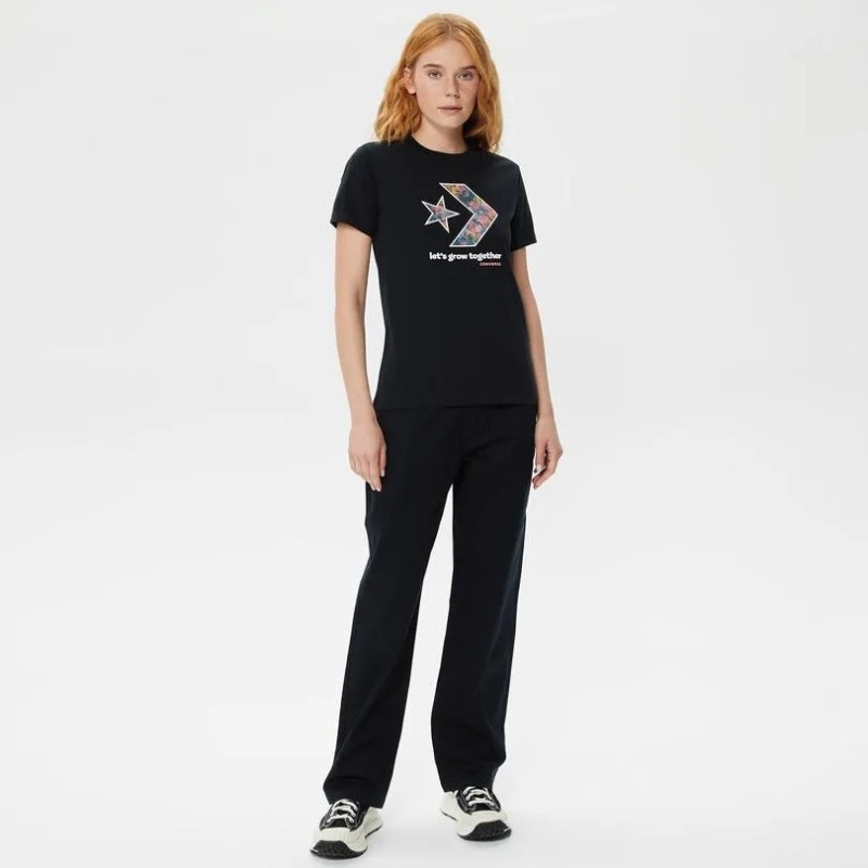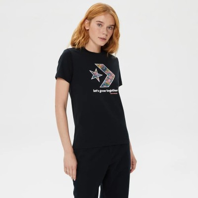 UN T-SHIRT FLORAL, FRAIS ET INSPIRANT. Le T-shirt Converse femme "Let’s Grow Together" allie douceur, style et message positif. Confectionné en jersey 100 % coton, il garantit une respirabilité agréable, idéale pour les journées d’été.